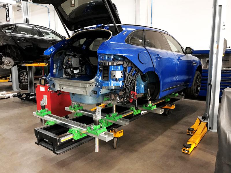 Each of our Aluminum Jaguar technicians have been certified by Jaguar North America to perform all types of structural repairs. We are proud to use the GlobalJig System endorsed by Jaguar to repair structural damages to the aluminum bodied Jaguar.